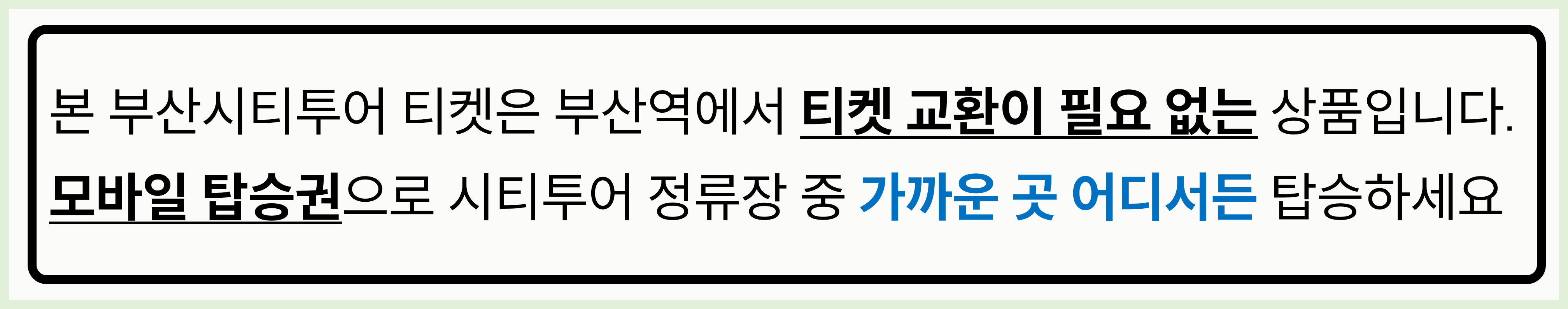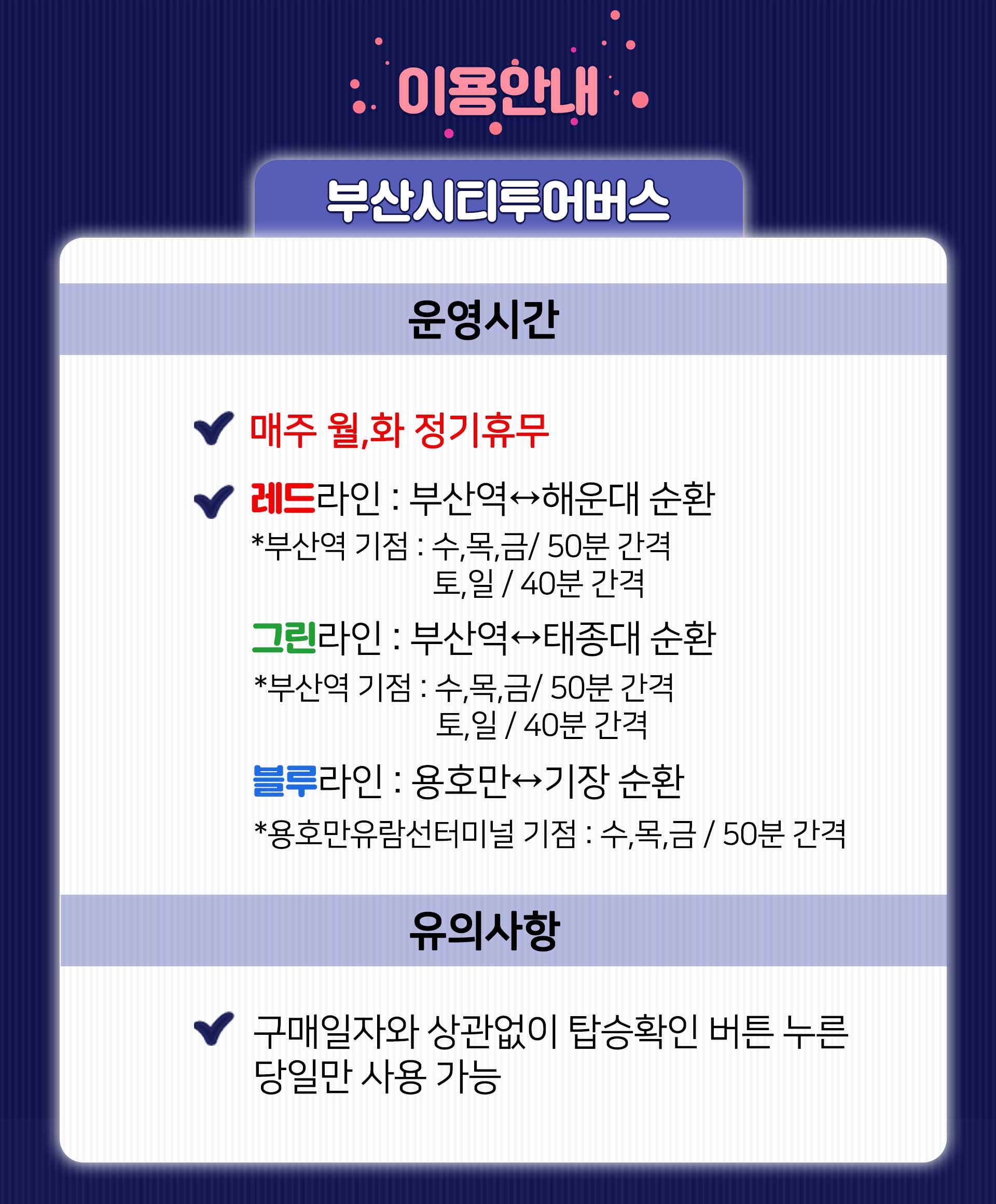 - 시티투어 사용처리 버튼을 누르신 경우 탑승 완료로 간주되어 환불이 불가합니다.